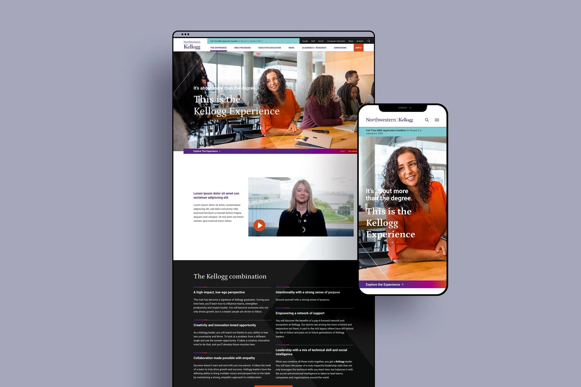 Kellogg website was redesigned to build positive first impressions — connect, capture attention and generate excitement among prospective students.